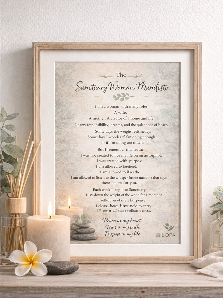 A beautifully printed copy of the Sunday Sanctuary Woman Manifesto